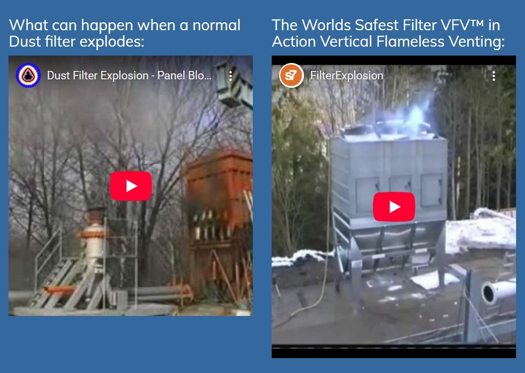 Demand a 21st C solution : VFV with Vertical Flameless Venting is the safest dust explosion release available in todays market for no extra cost than a filter with 1970's technology!